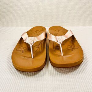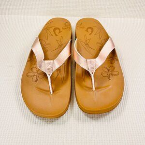 Olukai Kipe'a Flip Flop Thong Sandals Women's Size 9 Leather Brown Gold