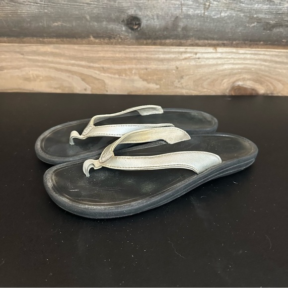 Olukai Kulapa Kai Silver Metallic Slip On Flip Flop Sandal Women’s Size 8