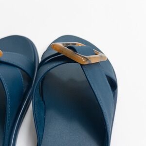 Olukai La'i Slide Sandals Women 8 Blue Tortoise Buckle Comfort Slip-On 31473-00