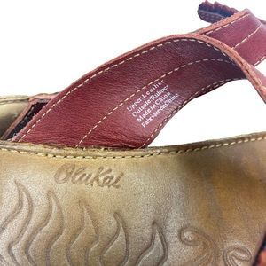 Olukai Leather Sandals Women's 10 US Kahili Tan Red Thong Slip On Slides 41 EUR