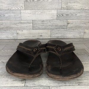 Olukai Mea Ola Brown Leather Flip Flop Thong Sandals Mens Size 11.