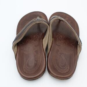 Olukai Mea Ola Leather Flip Flops Mens 12 Brown Comfort Sandals Casual Beach