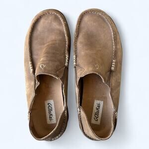 Olukai Men's Moloa Leather Slip On Loafer Brown Leather Moc Toe Size 11 Casual
