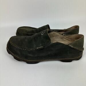Olukai Mens Moloa Loafers Shoes Gray Leather Slip-On Moc Toe 10 EUR 43