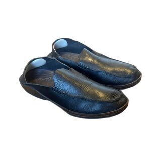 Olukai Mens Moloa Moc Toe Loafers Black Leather Slip On Comfort Shoes size 11.5