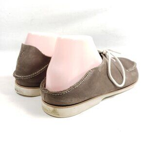These Olukai shoes offer both style and comfort, featuring a classic boat shoe design. The nubuck leather adds a sophisticated touch, while the white laces provide a clean contrast. Ideal for casual outings, they embody durability and elegance in every step. (tu1)