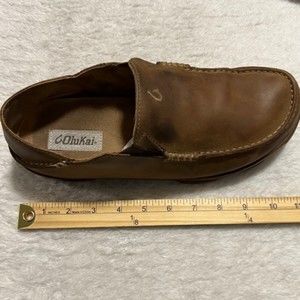 Olukai Mens US Sz 10M Moloa Brown Leather Slip On Loafer Shoes
