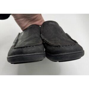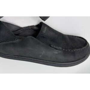 Olukai Moloa Boys Youth Black Leather Slip On Casual Loafers Size 4 See Photos