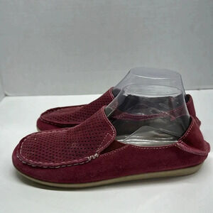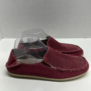 Olukai Nohea Slip On Shoes Loafers Perforated Suede Leather Red Women's Size 8