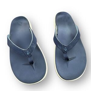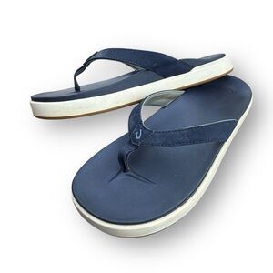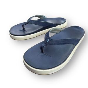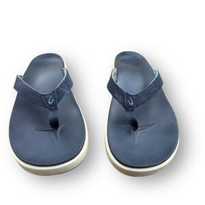 Olukai Nu'a Pi'o Platform Flip Flop Beach Sandals Trench Blue Women’s size 9