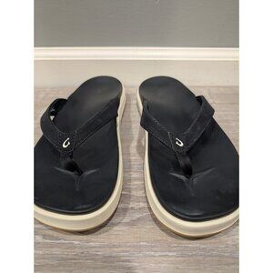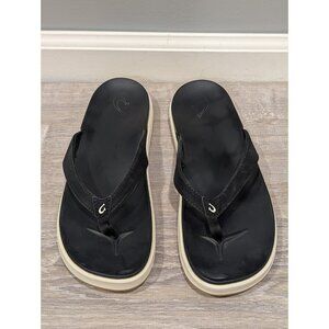 Olukai Nu'a Pi'o Sandals Womens Sz 10 Black Grip Rubber Flip Flops 20445 Summer