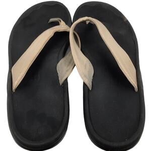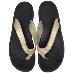 Pre-owned condition, Olukai Ohana Flip Flop Thong Sandals Champagne Gold Black Beach Summer Vacation Resort Lounge