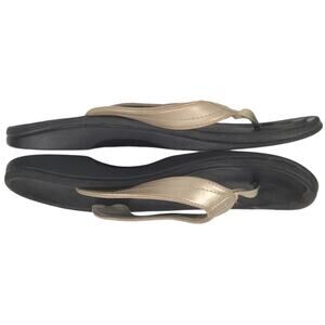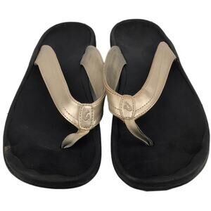 Olukai Ohana Flip Flop Thong Sandal Champagne Gold Black Womens Sz 11 20110-FA40