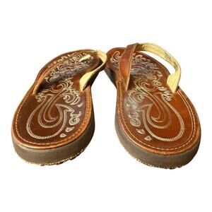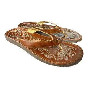 OLUKAI PANIOLO BROWN LEATHER SLIDE FLIP FLOP WOMEN SIZE 9