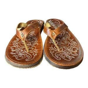 Olukai Paniolo Brown Leather Slide Flip Flop Women size 9