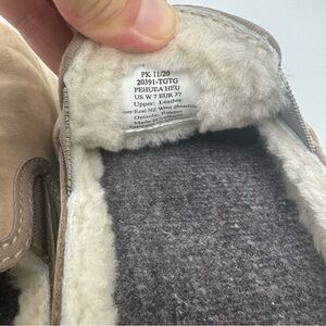 Olukai Pehuea Heu Tan Brown Suede Women’s Size 7 Shearling Slip-On loafers. Good used condition with some minor scuffing/black marks along white bottom.