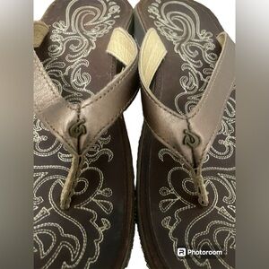 Olukai Polukai Paniolo Leather Flip Flops Sandals Natural Brown