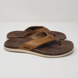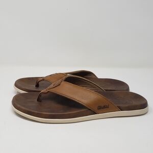 Olukai Sandals Men’s 8 Nalukai Brown Tan Leather Flip Flops