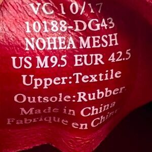Olukai Nohea Mesh Knit Loafers in Blue and Red. Made with breathable mesh fabric, these slip-on shoes feature a round toe, cushioned insole, and rubber outsole for a comfortable and durable wear. The shoes come in men's size 9.5 and have a solid pattern with blue character.