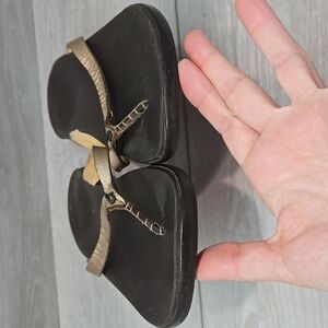 Step out in style with these elegant brown and gold sandals. Perfect for any casual outing.