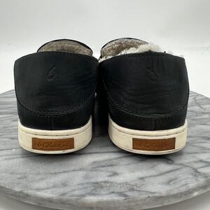 Olukai Womens 8 Loafer Black Suede Pehuea Heu Sheep Fur Lined Slip On Shoe