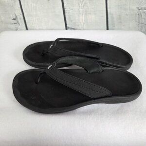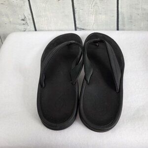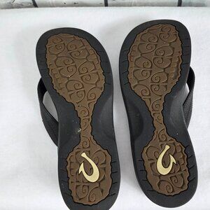 Olukai Womens Flip Flop Bundle Lot Size 9 Ohana and Ho'opio Black White Comfort. Arch support flip flops. Both womens size 9 although you can not read the size on the white pair (I bought them originally and know they are a 9). Good pre-owned condition, no significant flaws to note.