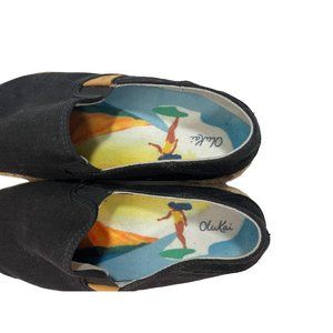 Olukai Women's Kaula Pa'A Kapa Espadrilles Flats 9 Black Linen Shoes