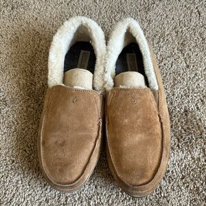 Olukai Women’s Ku’una Brown Suede Leather Shearling Fur Slip On Shoes Slippers