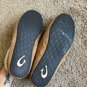 Olukai Women’s Ku’una Brown Suede Leather Sheepskin Fur Slip On Shoes Slippers