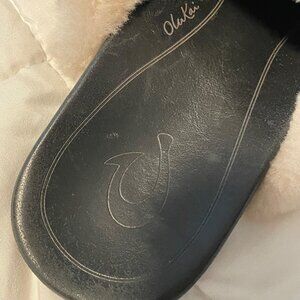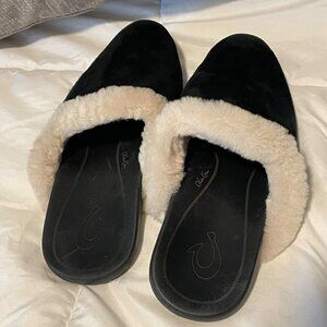 Olukai Womens Loma Hulu Shearling-Lined Leather Soles Slipper Size 7 Black
