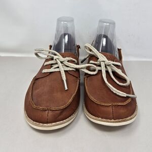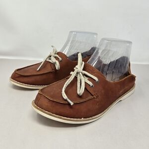 Olukai Womens Moku Leather Loafers Sz 8.5 Fold Down Heel Lace Up Casual Comfort