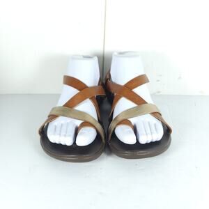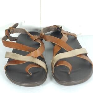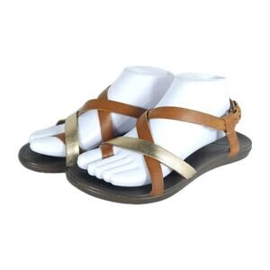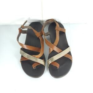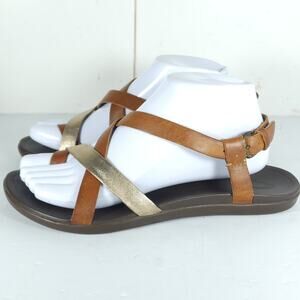 Olukai Women's Upena US8 Brown Gold Leather Crisscross Ring Toe Slingback Sandals.