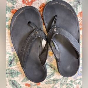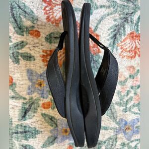 The footbed could use a cleaning and there is some tearing on the side of the strap
