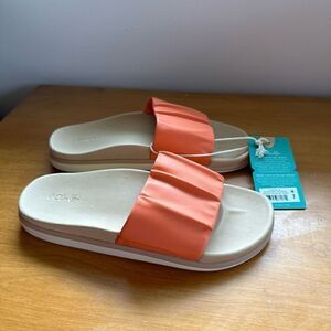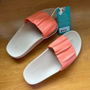 Olukai Women's Pihapiha Fusion Coral-Off White Leather Slide Sandal NWT