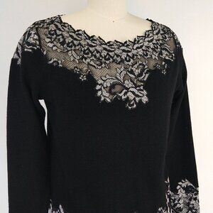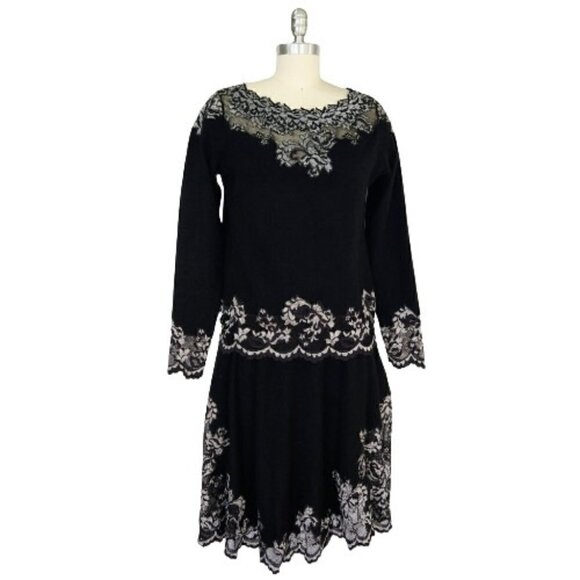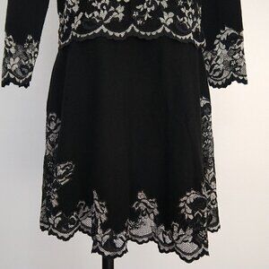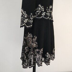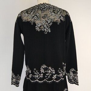 Olvis 100% Cashmere and Lace Skirt Top Set Size M Black Knit Sweater Formal