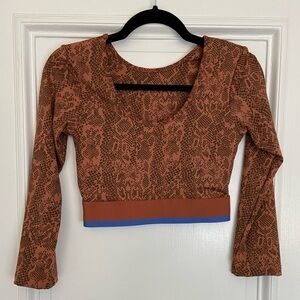 Olympia Activewear Long Sleeve Mira Crop Top Brown Snakeskin Activewear Workout