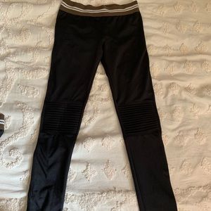 Lightly used Olympia leggings, relish because they didn’t fit quite right on me. Great condition aside from very small seam tear shown in picture but doesn’t affect the wear at all. Slightly padded knees, PERFECT fit yoga & working out and very comfy material!