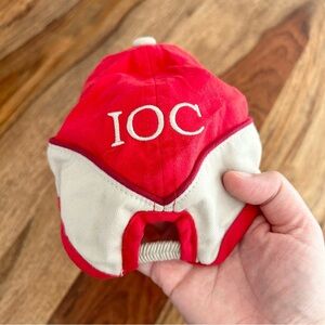 Features white & cream trim, embroidered IOC (International Olympic Committee) logo on back, elastic back.