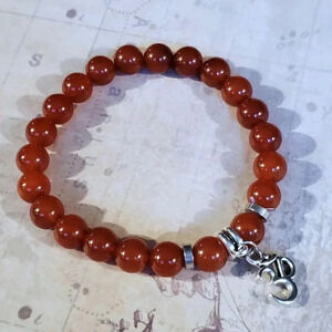 Om Aum Zen Mantra Mindfulness Red Carnelian Gemstone Stretch Bracelet