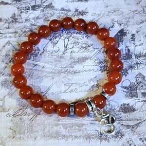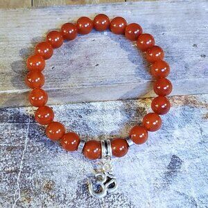 Om Aum Zen Mantra Mindfulness Red Carnelian Gemstone Stretch Bracelet