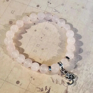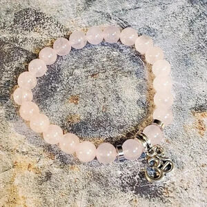 Om Aum Zen Mantra Pink Rose Quartz Gemstone Stretch Bracelet
