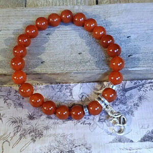Om Aum Zen Mantra Red Carnelian Gemstone Stretch Bracelet
