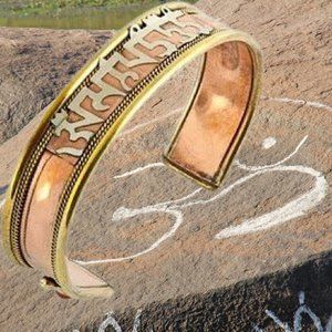 Adjustable Om Mani Padme Hum Tibetan Bracelet with Orange Stone Accents. The Om Mani Padme Hum mantra is the most widely used of all Buddhist mantras. Tibetan Buddhists believe that saying the mantra (prayer), Om Mani Padme Hum, out loud or silently to oneself, invokes the powerful benevolent.