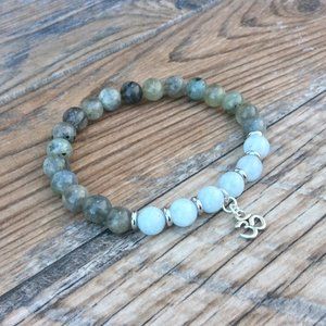 Om bracelet with Aquamarine & Labradorite. Meditation bracelet, healing bracelet
