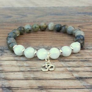 Om bracelet with Labradorite & Moonstone, meditation bracelet, healing bracelet