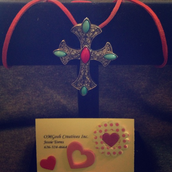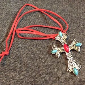 Hello all beautiful turquoise and maroon stones sterling cross heavy with maroon genuine suede cord