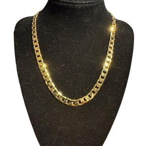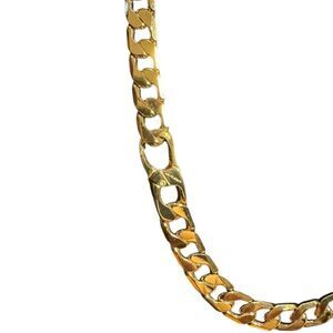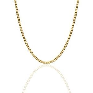This stunning gold necklace from Oma the Label features a classic curb chain design, showcasing interlocking links that lay flat for a sleek and polished look. Its medium thickness makes it a versatile accessory, perfect for adding a touch of elegance to any ensemble.