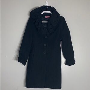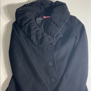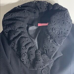 Omai Now or Never Black dramatic Ruffle Rose Cut Overcoat women’s small