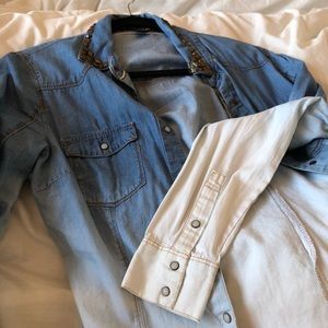 It’s a nice ombré button up with unique buttons and beading at the collar.