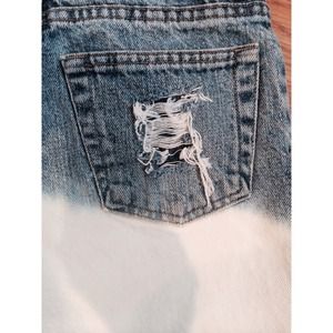 Super cute ombré distressed/torn jeans. Size 2 regular. Super comfy and cute for any season. In Autumn and Winter you can throw a sweater, boots and leggings on with it *and* you can wear these shorts in Summer or Spring with a tank top, flip flops and sunglasses. One of a kind and can even be studded by request! Hope you like it!